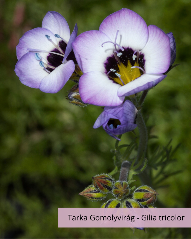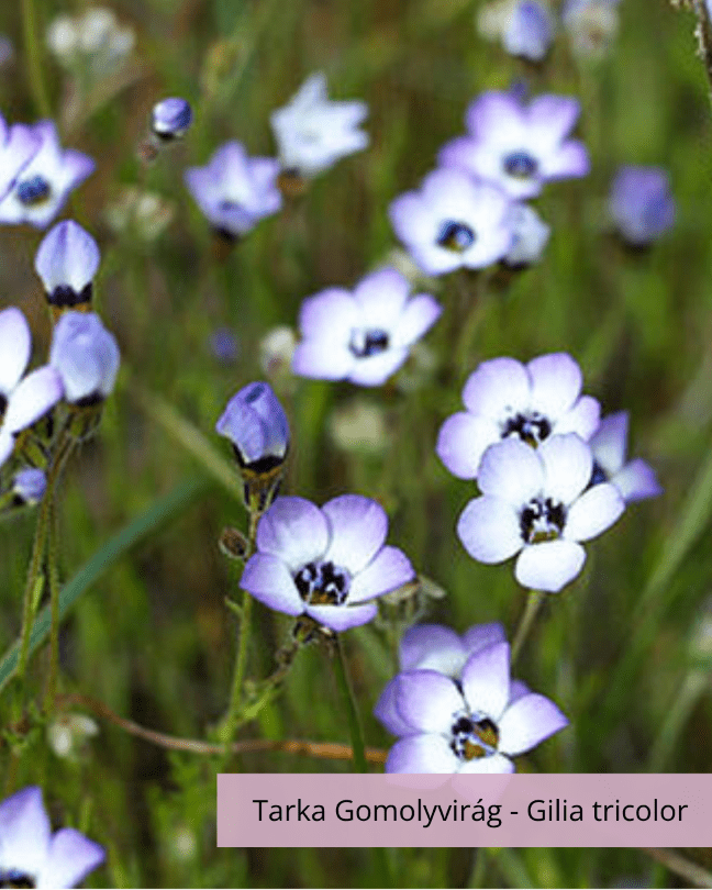Egy alacsony termetű, rendkívül bájos egynyári dísznövény, melyet különleges, háromszínű virágai miatt kedvelnek: a szirmok belső része ibolyáskék, fehér és sárgás árnyalatokkal. Származási helye Észak-Amerika (főleg Kalifornia), természetes élőhelyei száraz rétek.